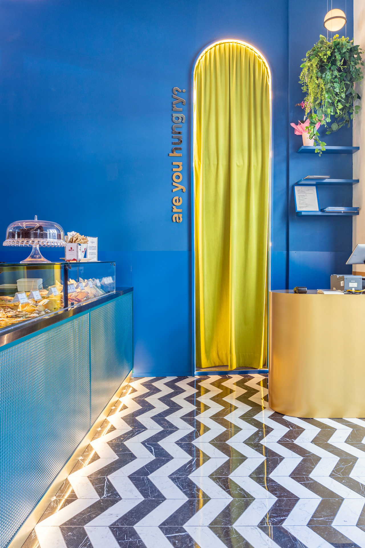 A key element of the project is the Flat display case with R4UP showcase, designed to operate within a temperature range of +4 to +60 °C. The profiles and hardware, painted in RAL 9005, blend seamlessly with the Absolute Black Okite quartz surfaces used for the worktop, perimeter counter, and heated plate, creating a visually striking and stylistically coherent effect.