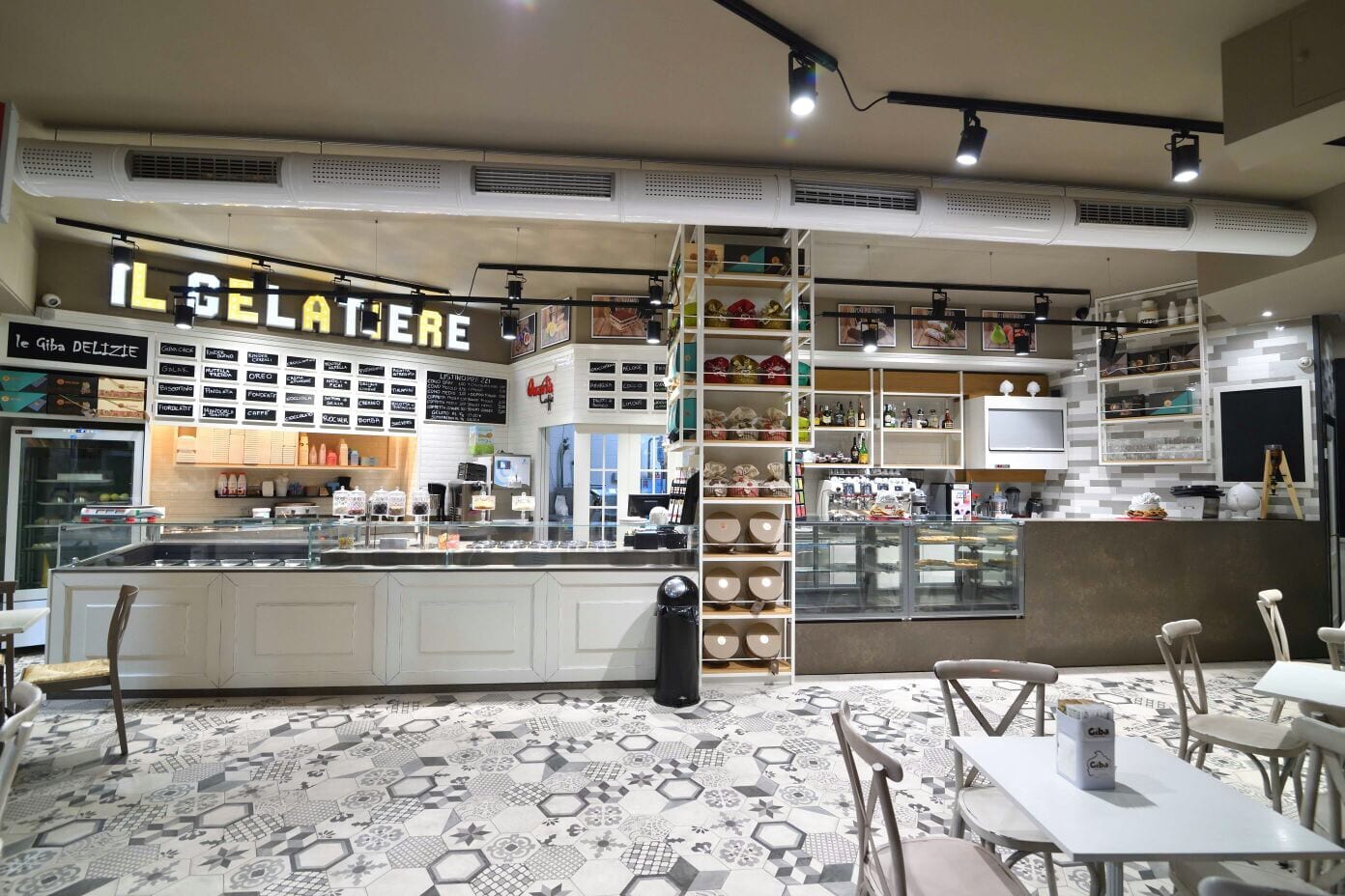 Ciam collaborated with Ar.Co. Design in the realisation of Gelateria Giba, located in San Pietro in Bevagna (TA). The products provided by Ciam are: 6040 G1 Gelato, Flat TS Dry-warm, le glycol with recycling pump system, Tortuga 2, Compact Basic Strandard Inox with frontal cladding in brown compound.