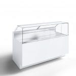 Fornitura di vetrina gelateria serie 6040 PREMIUM con alzata G1 e frontale in HPL bianco, predisposizione per vendita stecchi gelato.