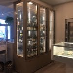Si tratta di un Brilliant a 3 porte verniciato a polvere RAL 1019 e allestito con le mensole standard in vetro, per la più classica esposizione vino in verticale.