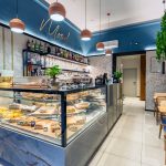 - Una vetrina Tortuga a temperatura positiva, con serigrafia RAL 9005 e pannellatura in gres Xtone Blue Roma Polished, perfetta per valorizzare i prodotti esposti con stile e funzionalità.